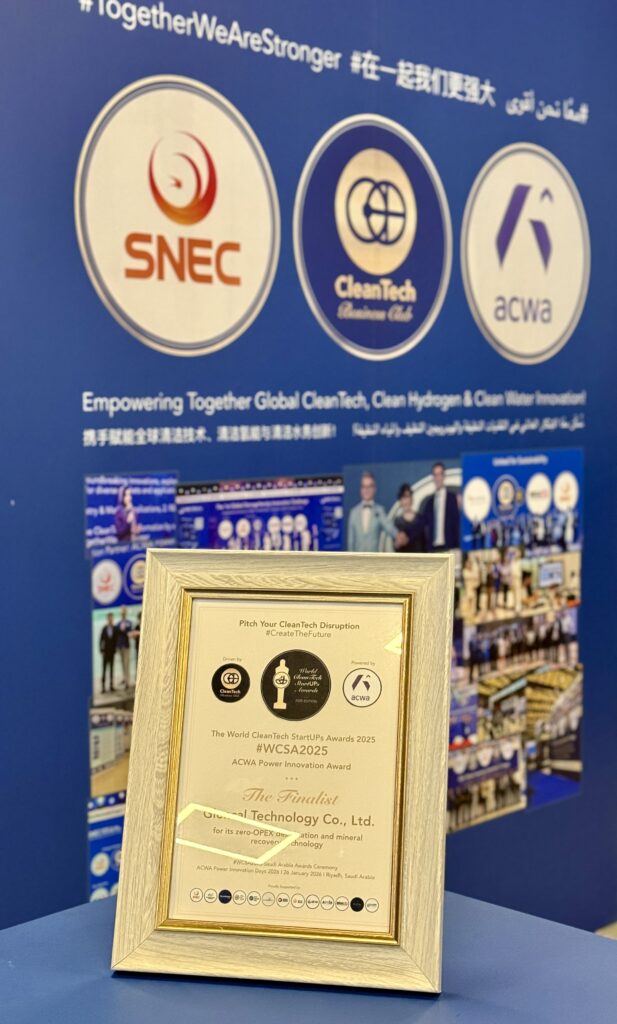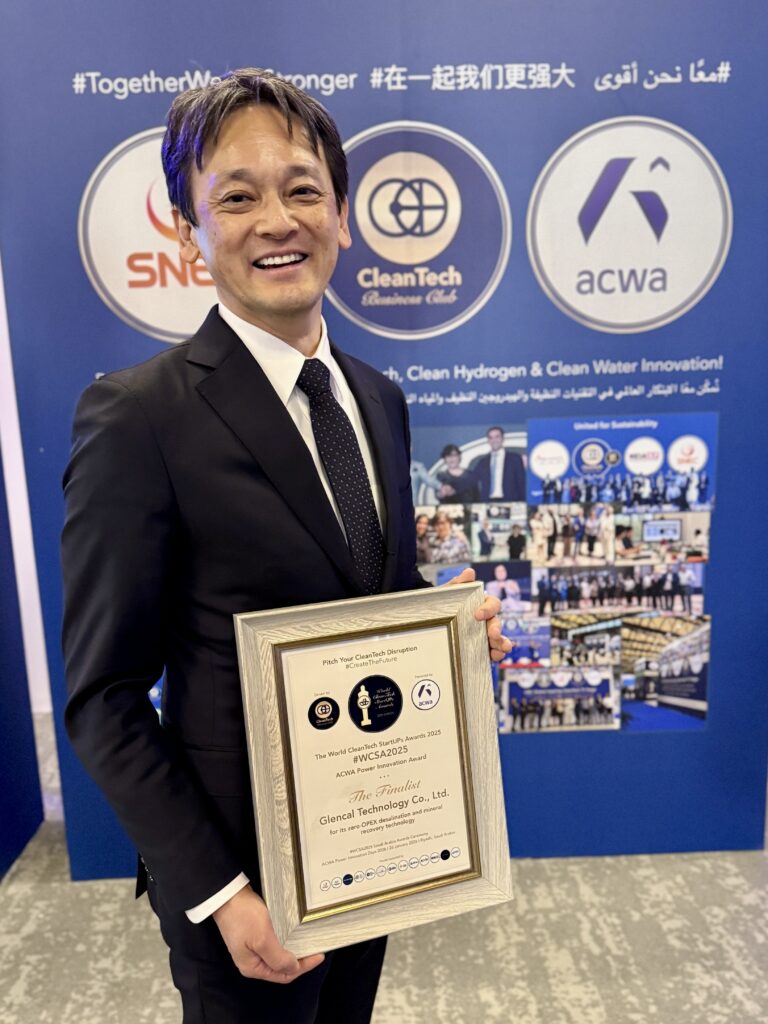 グレンカル・テクノロジーは、世界的クリーンテックアワードWorld CleanTech Startups Awards 2025(ACWA Power Innovation Award) において、世界25カ国48社からの応募の中から最終選考に残ったファイナリスト12社中総合2位 という評価をいただきました。