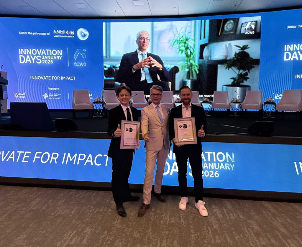 本アワードは、サウジアラビアを拠点とする ACWA Power(世界最大級の水・発電・グリーン水素インフラ事業者の一社。時価総額数兆円規模、世界中で国家級インフラを手がける企業)の支援のもと、CleanTech Business Club などが主催する、「研究」ではなく「実装・事業化」できるか を厳しく問う国際アワードです。